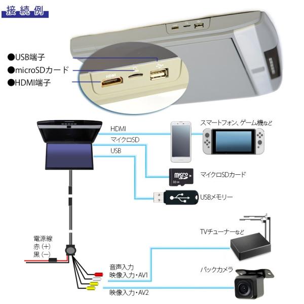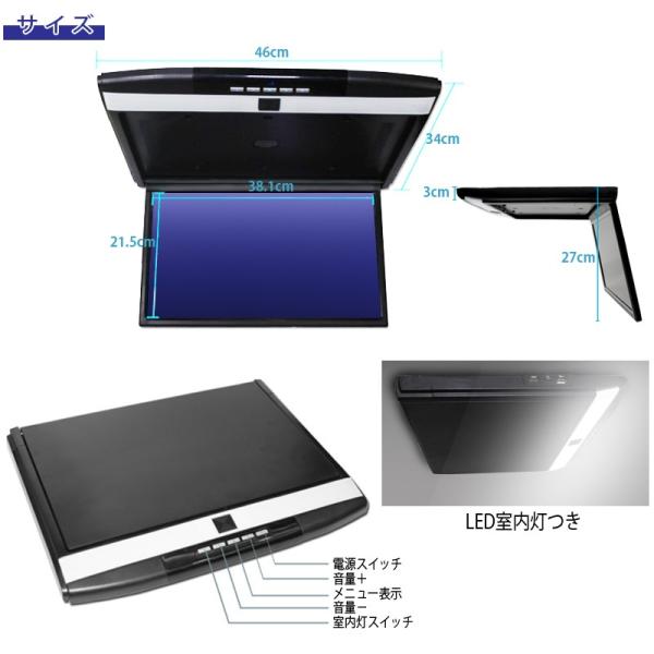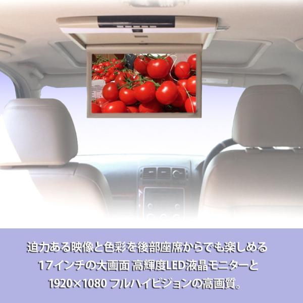 車載 フリップダウン 17.3インチ 大型 モニター フルハイビジョン スピーカー HDMI USB SD 室内ライト ブラック グレー ベージュ
