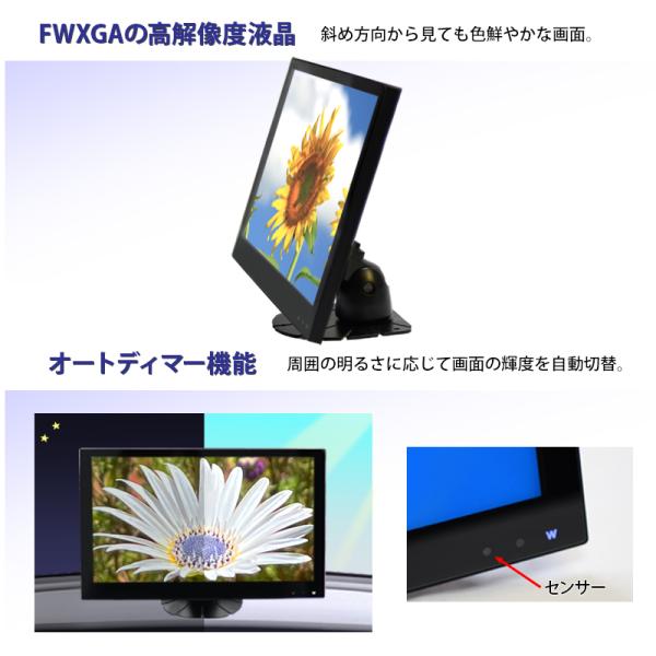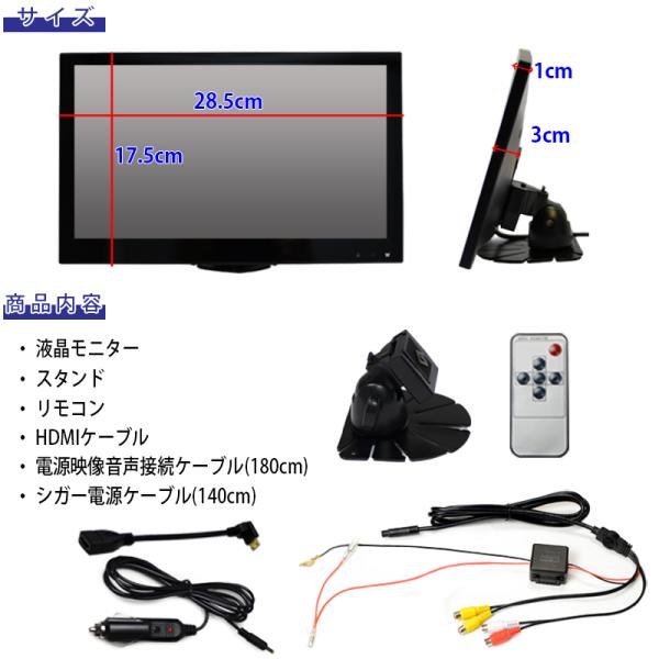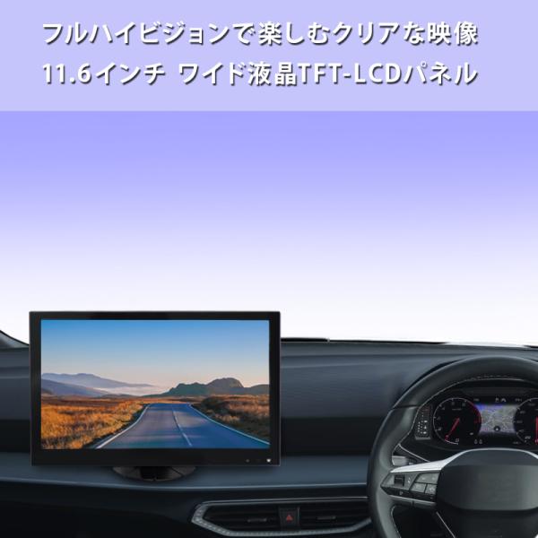 モニター 車 11.6インチ オンダッシュ ディスプレイ 薄型 高画質 12V/24V フルHD HDMI AV接続 シガー電源