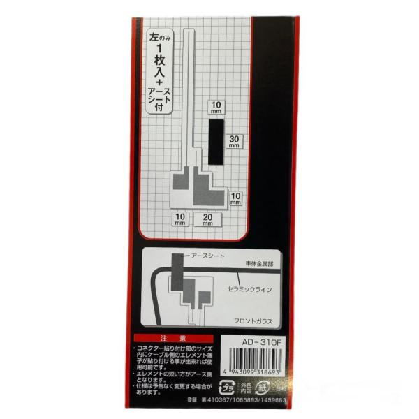 【補修用】地デジ ワンセグ対応 汎用フィルムアンテナ 両面テープ付 日本製 左側1枚入+アースシート付 AD-310F