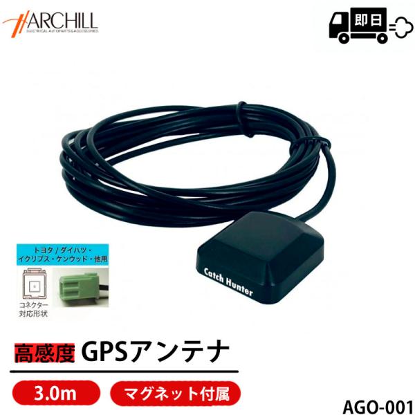 3mケーブル付き マグネット貼付 GPSアンテナ トヨタ ダイハツ イクリプス ケンウッド等対応 AGO-001