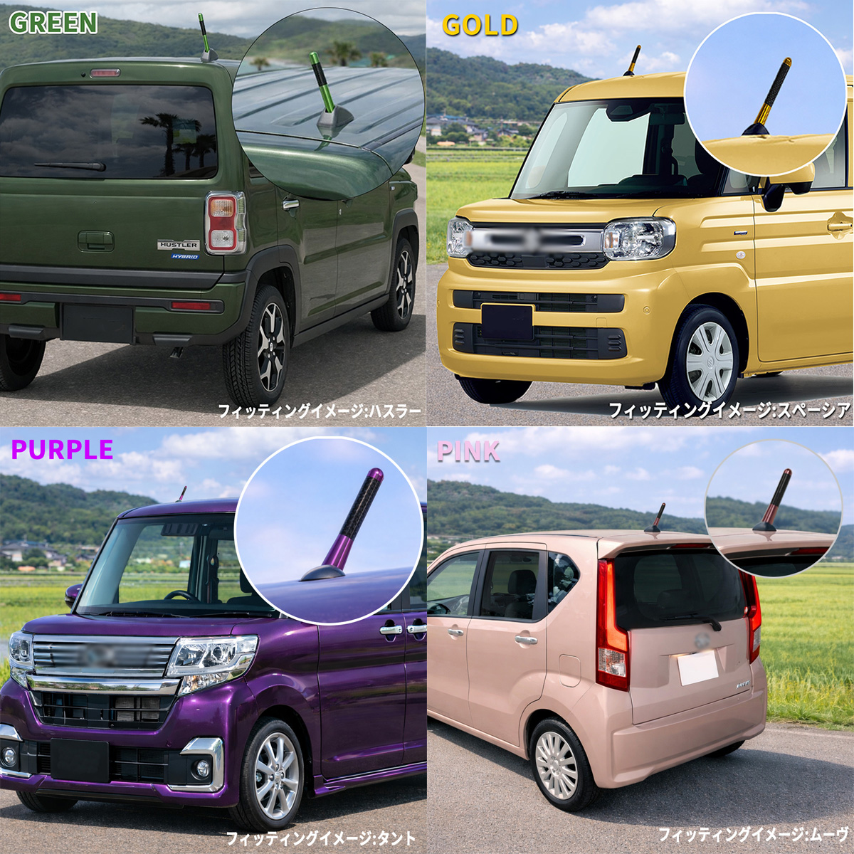 ショートアンテナ 車 アンテナ 高感度 カーボン調 ブラック シルバー ブルー レッド グリーン ピンク パープル ゴールド 外装 パーツ NBOX ワゴンR タント