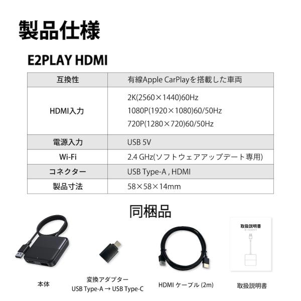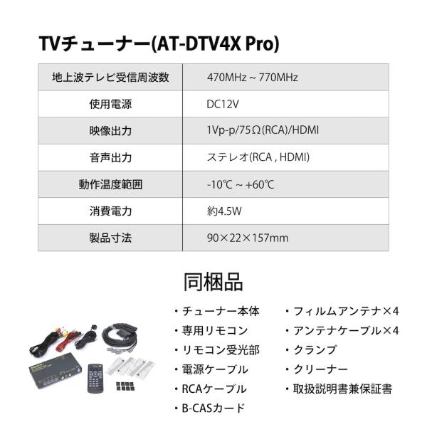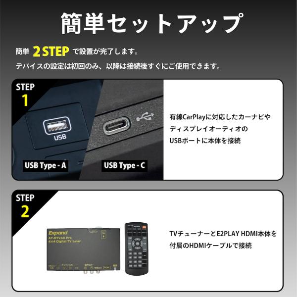 有線 CarPlay HDMI アダプター 地デジ TVチューナー セット (車載 モニター カーナビ テレビ HDMI接続 a/tack AT-DTV4XPro) TVチューナー後付け E2PLAY HDMI