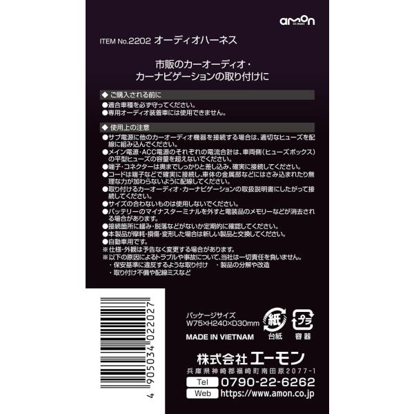 エーモン工業 2202 オーディオハーネス トヨタ ダイハツ 用 / 10ピン 6ピン オーディオ ナビ カスタム 配線 接続 変換