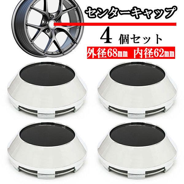 ホイールセンターキャップ 68mm 62mm 4個 DIY ホイールカバー センターカバー 車 センターキャップ G シルバー×ブラック 送料無料
