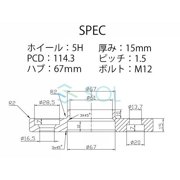 マツダ アクセラ スポーツ セダン BK系 BL系 BM系 アルミ鍛造 ワイドトレッドスペーサー ハブ付 15mm PCD114.3 M12 P1.5 5H 67mm 2枚セッ