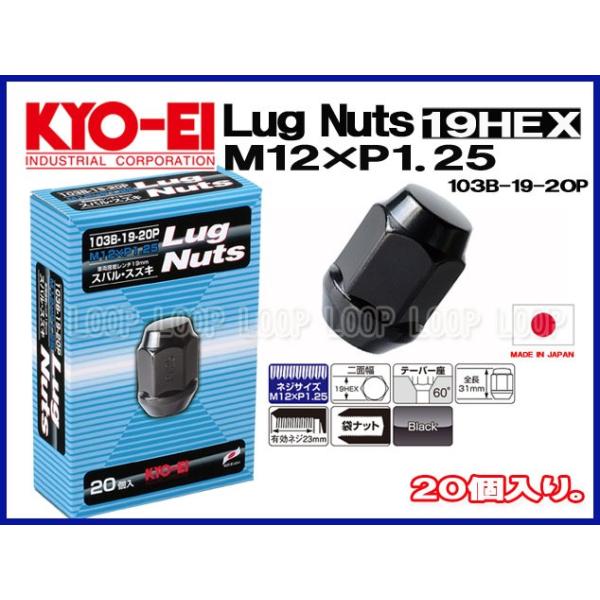 KYO-EI ラグナット 20個入 19HEX M12×P1.25 ブラック 袋 103B-19-20P 協永産業