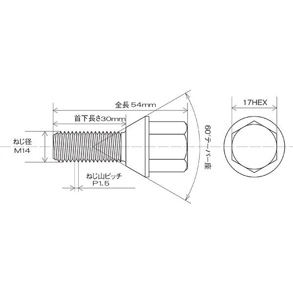 KYO-EI ラグボルト M14×P1.5 17HEX メッキ 全長52mm首下30mm 60°テーパー座 300-17-30 協永産業