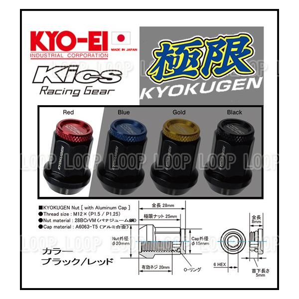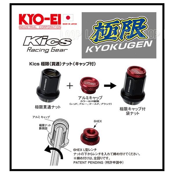kics 極限 貫通ナット M12×P1.5 アルミキャップ付 レッド 16個 HP16KR 協永産業