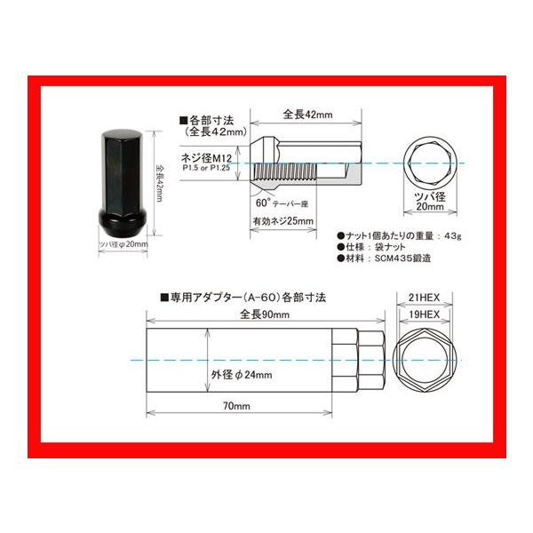 kics 極限 ロングナット 42mm M12×P1.5 HPF1B4 ブラック 20個 協永産業