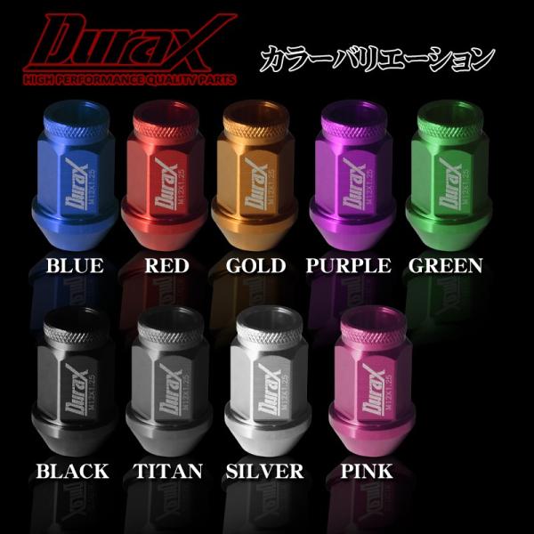 ホイールナット レーシングナット ショート貫通 アルミ DURAX 20個セット レッド ブルー ブラック ゴールド チタン シルバー P1.5 P1.25 BBPSK