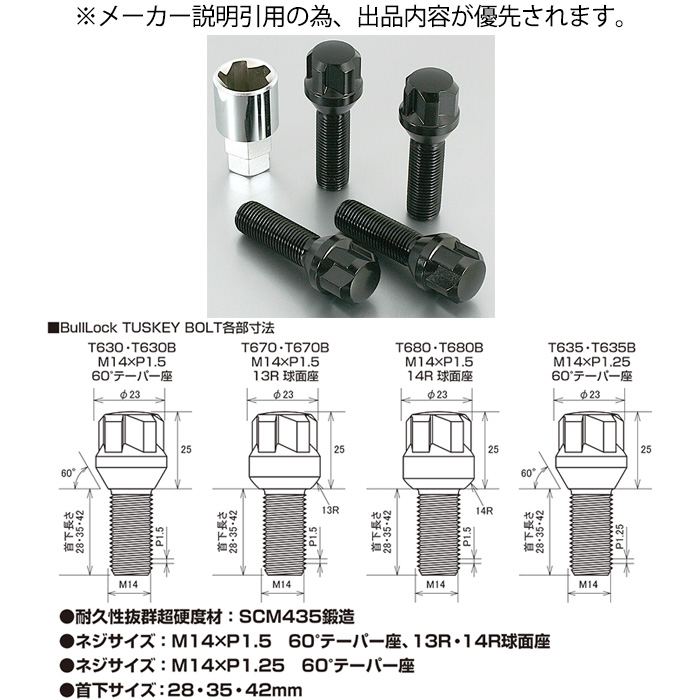 KYO-EI ブルロック タスキー ボルト ロックボルト M14XP1.5 60度テーパー 首下・28mm ブラック 1セット(4個入り)
