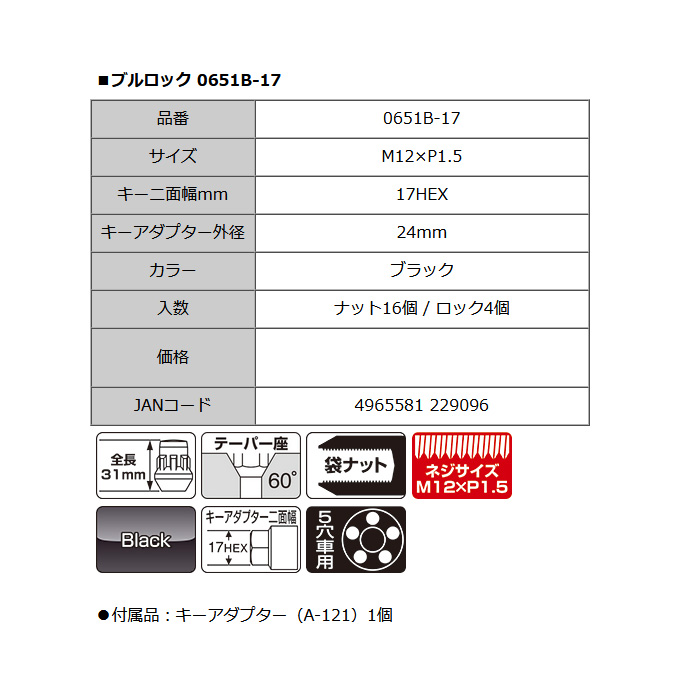 KYO-EI ブルロック袋タイプ M12×P1.5 17HEX ブラック ロック&ナットセット 1セット(20個入り)