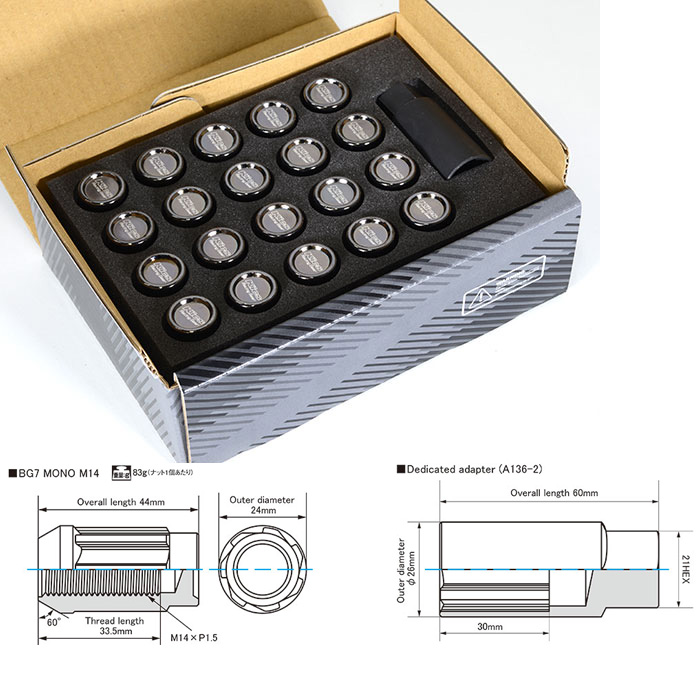 KYO-EI キックス BG7 MONO クローズエンドナット グロリアスブラック M14XP1.5 60°テーパー 1セット(20個入り) BG7M04