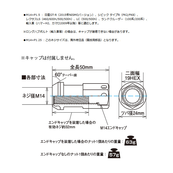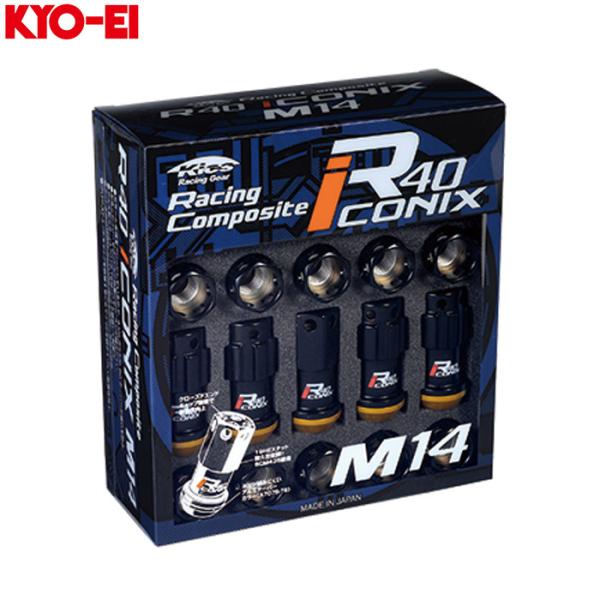 KYO-EI レーシングコンポジット R40 M14 アイコニックス ロックナットセット アルミキャップ無し M14XP1.5 19HEX ブラック 1セット(20個入り)