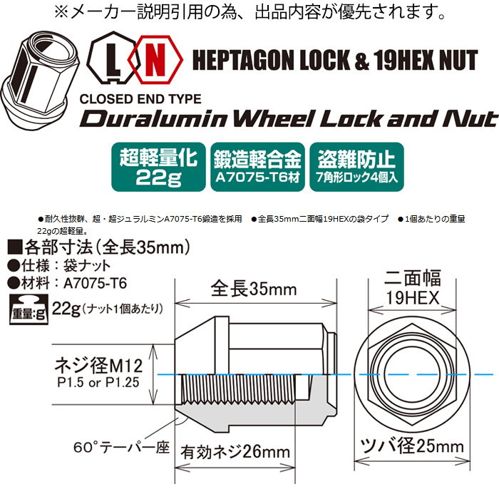KYO-EI キックス レデューラ レーシング L35 ロックナットセット M12XP1.25 19HEX ブラック 1セット(16個入り)