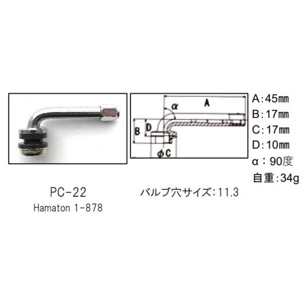 乗用車 チューブレス 内締め クランプイン バルブ ベンドタイプ 1本 PC-22