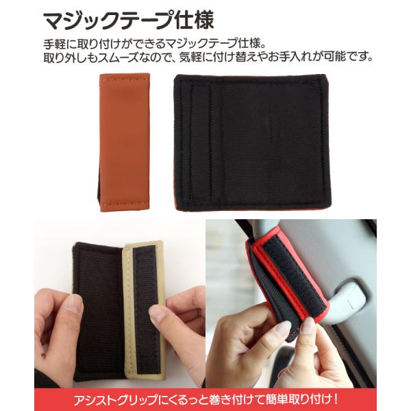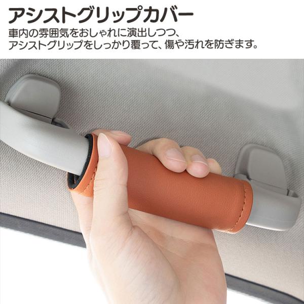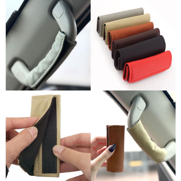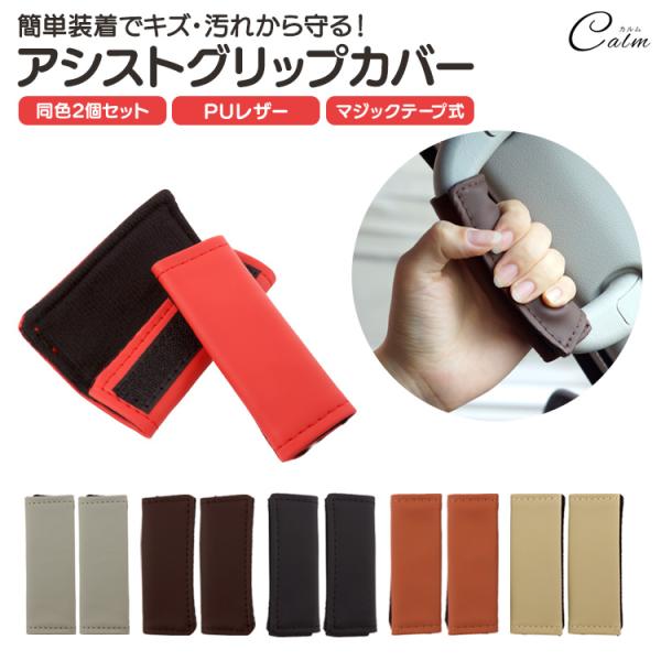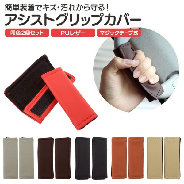 アシストグリップカバー 2個セット 取っ手 カー用品 車 内装 ドレスアップ 汚れ 傷 防止 滑り止め 簡単取付 マジックテープ カーアクセサリー PUレザー