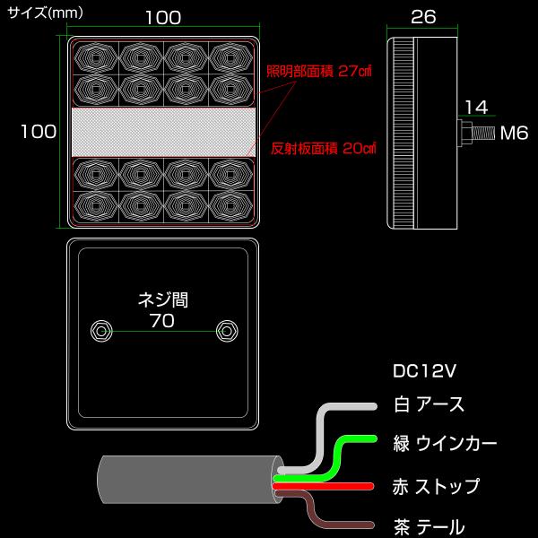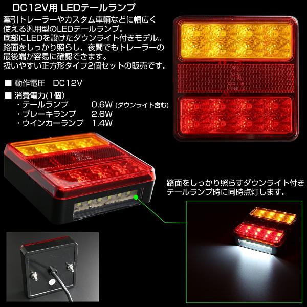 LED テールランプ 12V 汎用 ダウンライト内蔵 ボートトレーラー リフレクター付 2個セット F-255