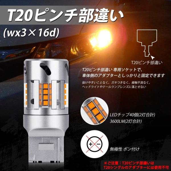 ハイエース t20 led ウィンカー ピンチ部違い 冷却ファン搭載 ハイフラ防止 LEDバルブ 抵抗内蔵 WY21W WX3×16d LEDウィンカー球 DC12V車用 無極性 2個入り