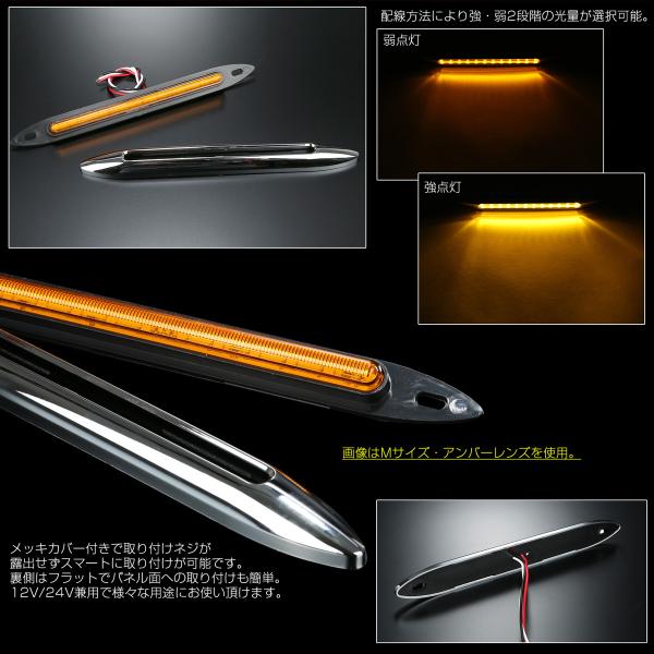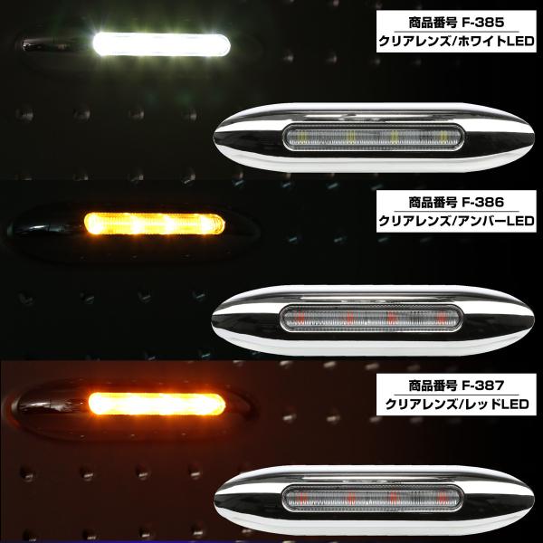 LED サイドマーカー スーパースリム Sサイズ 12V 24V 兼用 トラック メッキカバー 細型 車高灯 車幅灯 全9色 F-385-393