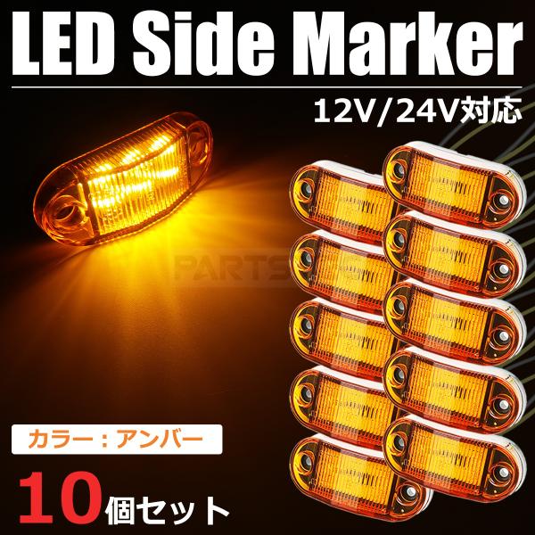 汎用 サイドマーカー アンバー 黄 10個セット LED 6発 12V 24V 路肩灯 車幅灯 車高灯 トラック トレーラー / 147-84x10 L-4