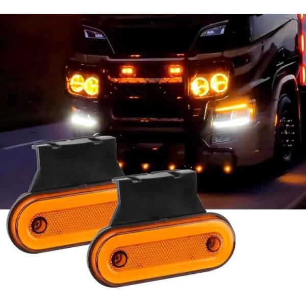 スーパーブライト 12V 24V 兼用 車 トラック LED サイドマーカー デイライト LED 路肩灯 防水 M7 2個セット オレンジ アンバー