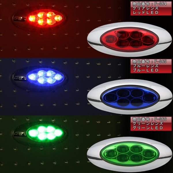 6LED オーバル マーカーランプ メッキ サイドマーカー 12V 24V兼用 F-358-366
