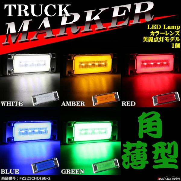 トラック マーカー LEDサイドマーカー 美麗点灯 薄型 角形 DC24V カラーレンズ 1個