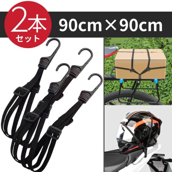 フック付きゴムロープ 2本 セット 60cm 90cm ゴムバンド バイク 自転車 ゴムベルト フック付き ゴムロープ 荷物 固定 ベルト 荷台 ゴム紐 ゴムひも 固定バンド