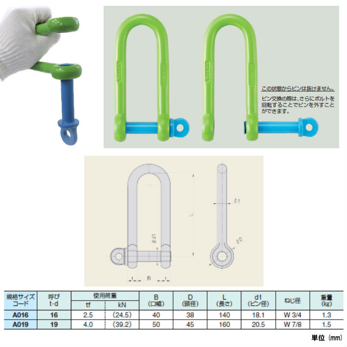 KONDO 強力合体長シャックル 19mm 4.0t【コンドーテック 矢板 シャックル シャコ】