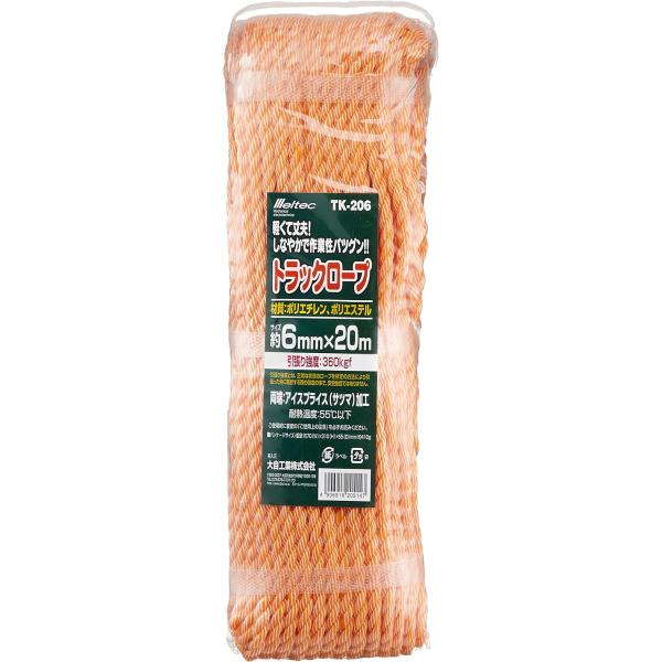 TK-206 メルテック meltec 大自工業 軽トラック用品 軽トラ職人 トラックロープ 6mmX20m アイスプライス加工 爆買