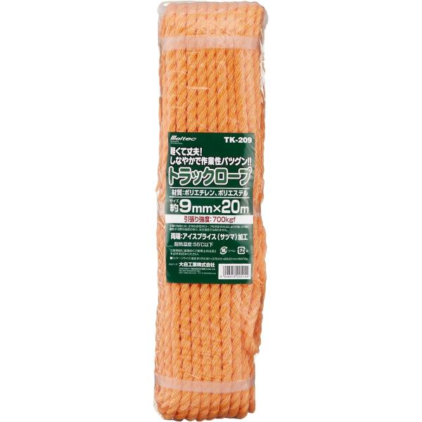 TK-209 メルテック meltec 大自工業 軽トラック用品 軽トラ職人 トラックロープ 9mmX20m アイスプライス加工 爆買