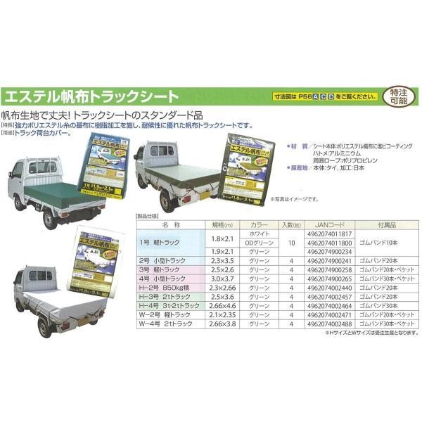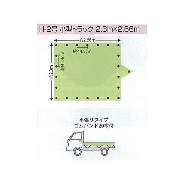 エステル帆布 トラックシート グリーン H-2号 2.3m×2.66m | 軽850kg積 トラック 荷台シート 荷台カバー ゴムバンド 20本入 防水 耐候性 緑