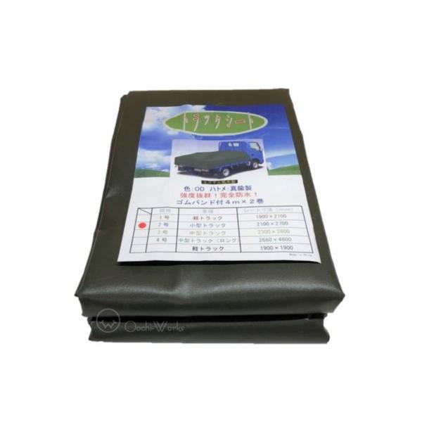 トラックシート OD 2号 2.1m×2.7m コードゴム4m×2本付き ダブルキャブ 国防色 エステル帆布 荷台カバー 荷台シート 送料無料