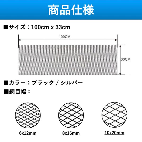 フロントグリル グリルメッシュ 車 グリル メッシュ グリルメッシュネット 網 グリルカバー アルミ製 メッシュグリル ブラック シルバー