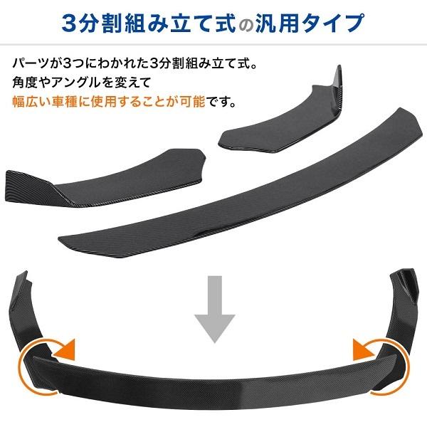 フロントスポイラー カーボン調 汎用 フロントリップスポイラー 分割式 エアロパーツ 車 ドレスアップ カー用品 リップスポイラー スポイラー