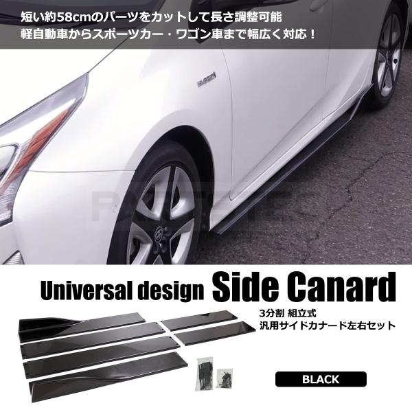 汎用 サイドカナード 3分割 組立式 艶有り ブラック 左右6枚セット ABS製 エアロ カスタム 外装 バンパー ドレスアップ 社外 / 103-63 R-4
