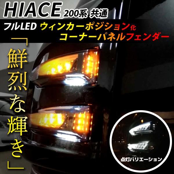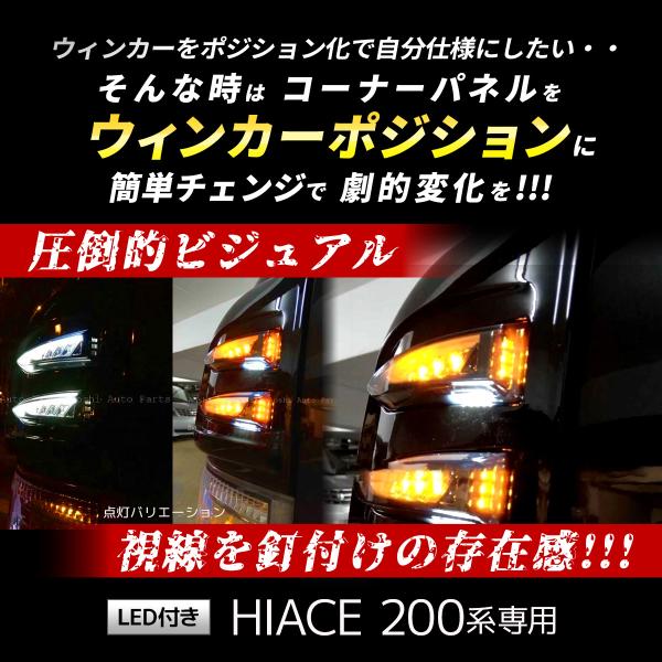 ハイエース 200系 LED付 コーナー パネル フェンダー 左右 ブラック ウインカー ポジション AOSHI