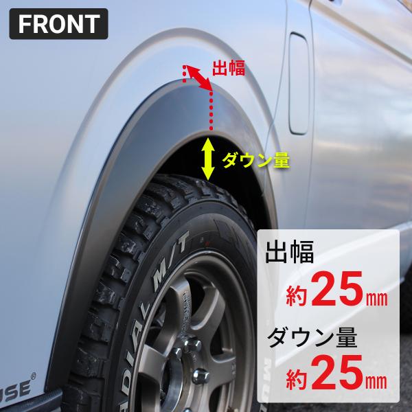 ハイエース オーバーフェンダー ダウンルック ローダウン ABS製 ブラック 200系 全型式 標準 ナロー ワイド ボディ適合 1台分セット 25mm