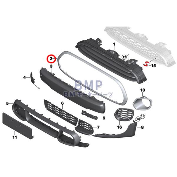 BMW MINI 純正 F55 F56 F57 フロント グリル フレーム カバー ピアノブラック Piano Black JOHN COOPER WORKS 前期 LCI1
