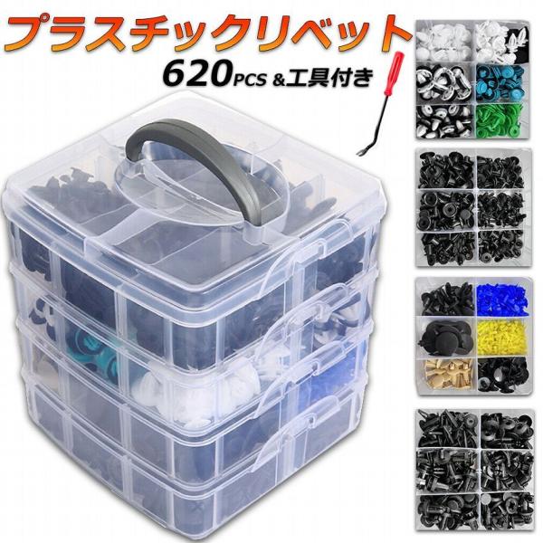 プッシュリテーナーピンリベット 620PCS ピンバンパーバックル モールディングクリップキット クリップ プラスチックリベット アクセサリー