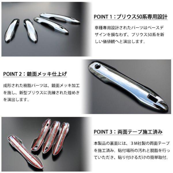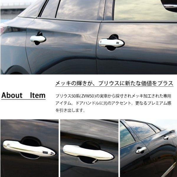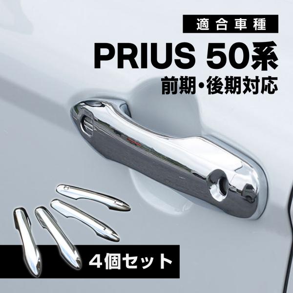 プリウス 50系 メッキ ドアハンドル カバー ドアノブ プロテクター 4ピースセット カスタム パーツ ドレスアップ アクセサリー メッキ ガーニッシュ