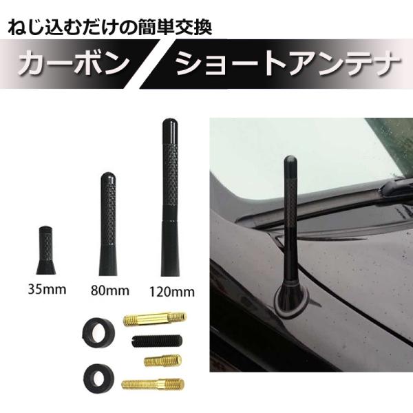 車用 ショートアンテナ カーボン調 黒 ブラック 車 ユーロアンテナ カーボン ルーフアンテナ ポールアンテナ 12cm 8cm 3.5cm jd-ca027