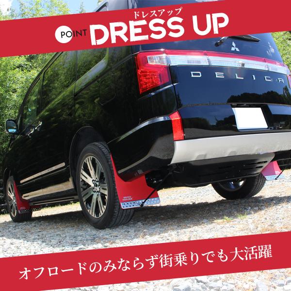 デリカ D:5 マッドガード マッドフラップ 泥除け 1台分 オフロード カスタム レッド ブラック グリーン グレー 2019年3月以降 3DA-CV1W 2026年以降装着不可