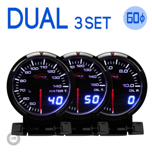 水温 油温 油圧 DUAL 3連メーター 60Φ デポレーシング deporacing アナログ/デジタル アンバーレッド/ホワイトLED 1年保証