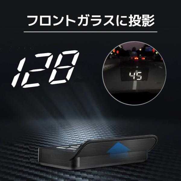 速度測定ヘッドアップディスプレイ GPS搭載 HUD デジタルスピードメーター 簡単設置 反射フィルム付フロントガラスに速度リアル表示 汎用速度HUD HUDSA7