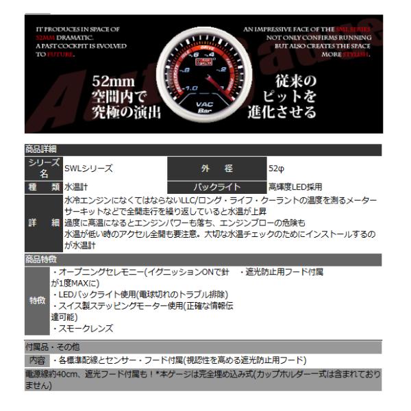 オートゲージ 水温計 SWL52φ スモークメーター ホワイトLED