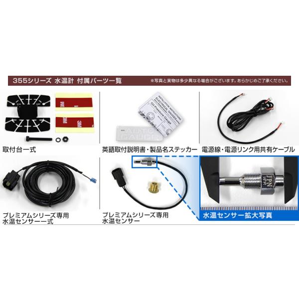 水温計 オートゲージ 52mm 日本製モーター 車 2色バックライト ワーニング付 355シリーズ 追加メーター 後付け AUTOGAUGE