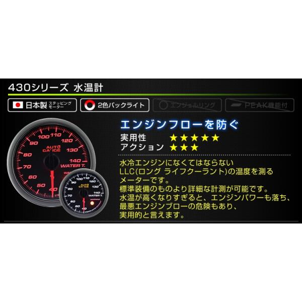 オートゲージ 水温計 52mm 日本製モーター 430 後付け 車 メーター AUTOGAUGE