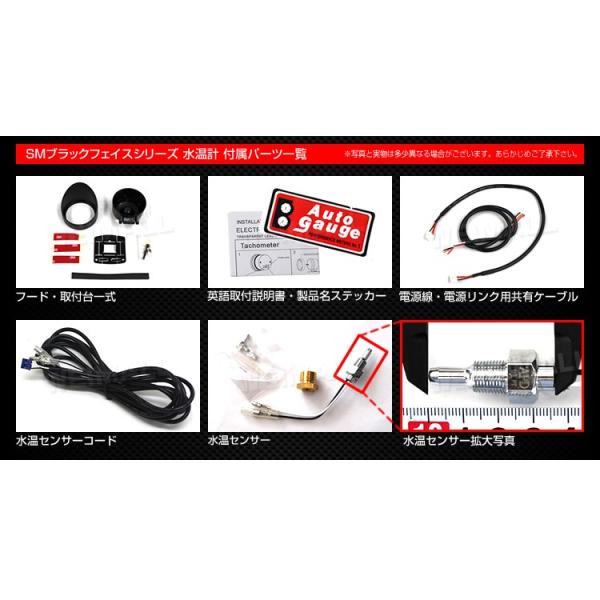 水温計 オートゲージ 黒 52ミリ スイス製ステップモーター スモークフェイス 追加メーター 車 ホワイトLED SMシリーズ AUTOGAUGE